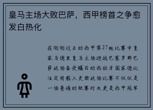 皇马主场大败巴萨,西甲榜首之争愈发白热化