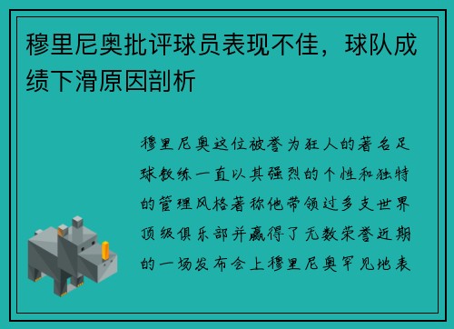 穆里尼奥批评球员表现不佳,球队成绩下滑原因剖析